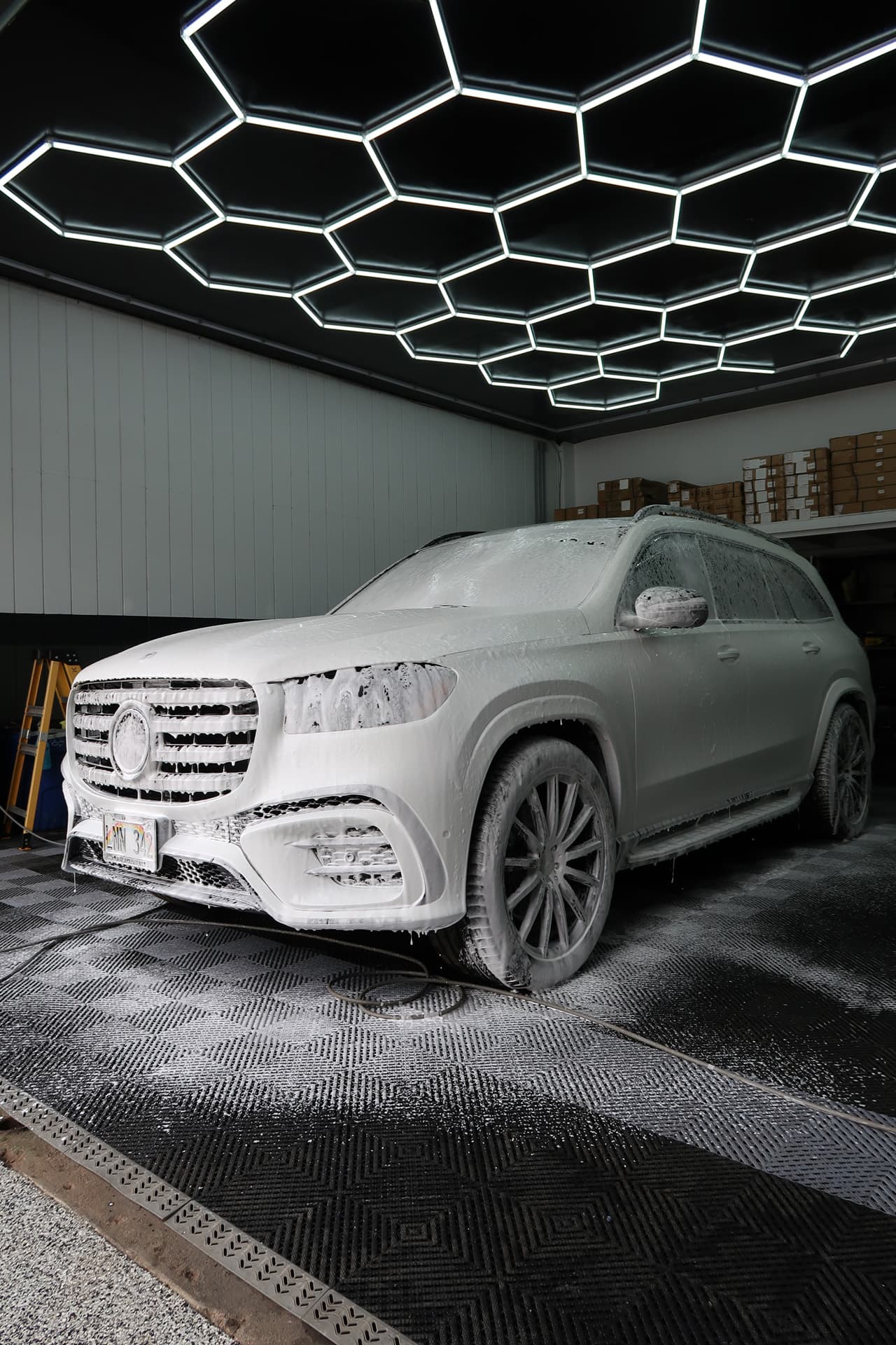 Please wait 7 full days before your first wash so the ceramic coating can cure properly. After that, we recommend using our gentle **Membership Wash** programme or a pH‑neutral shampoo to keep the coating performing its best.